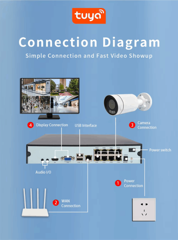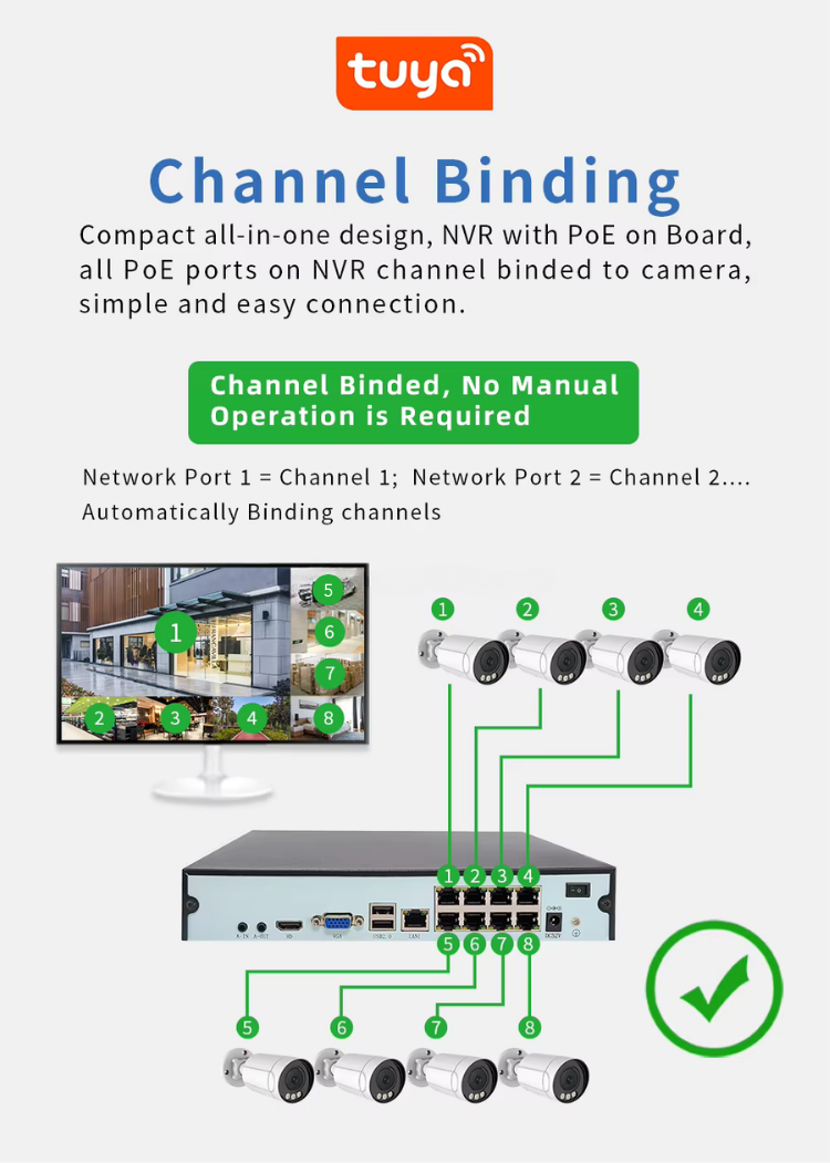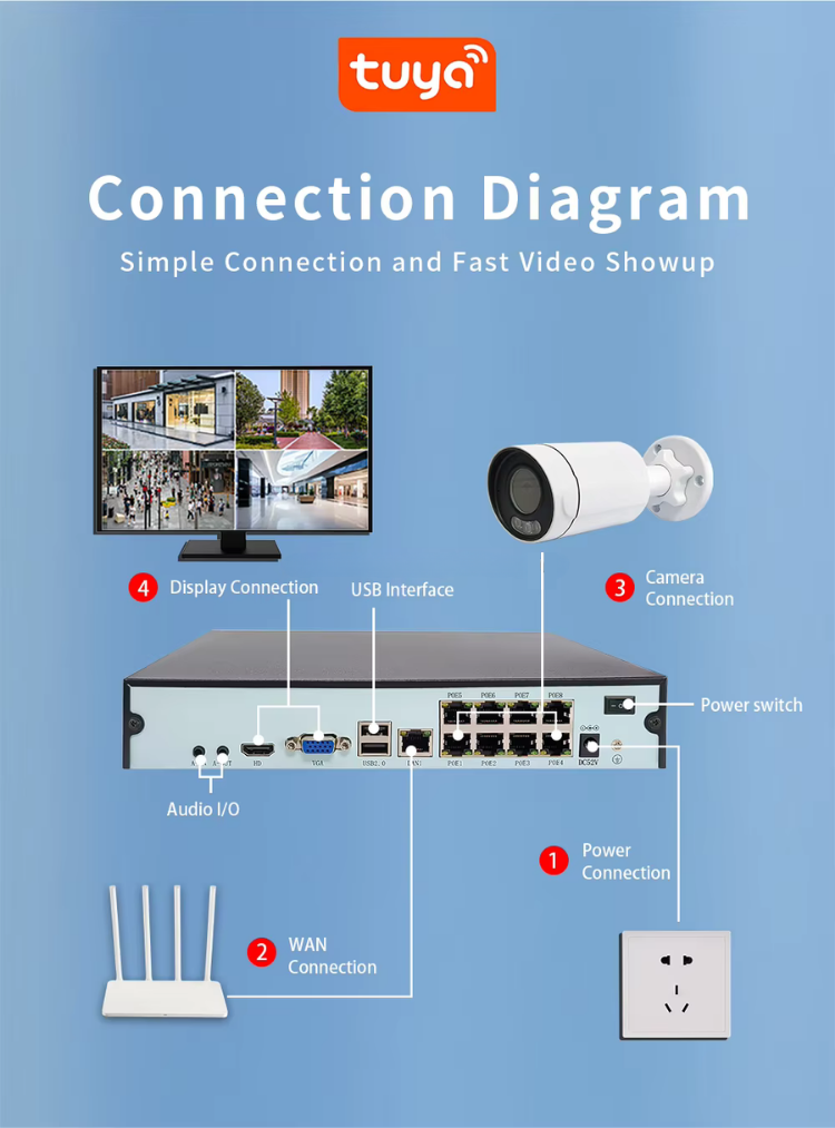 Comes with a 4TB HDD for convenient, high-capacity storage (8TB HDD for 16 Channels)