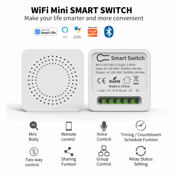 Works with Tuya / Smart Life App for easy setup and automation